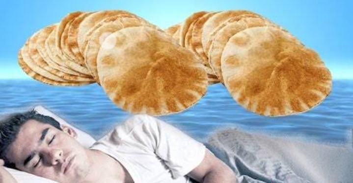 الخبز هو في المنام على وجوه شتى، فالخبز الأبيض يدل على الرزق الهنيء والعيش الرغد، والخبز الأسود يدل على النكد في العيش، وقيل كل رغيف يدل على عقد من المال إما أن يكون ألفاً أو مائة أو عشرة على مقدار حال الرائي وما يليق به، والخبز المر عيش مر، والخبز الحلو غلاء في الأسعار إذا كان كالعسل، أو السكر، ومن أكل الخبز بالعذرة فإنه يأكل العسل بشمعه، وأجود الخبز هو الفرني الناضج، وهو دال على الإسلام، لأنه عمود الدين وقوام الروح وحياة النفس. وربما دل على الحياة، والمال الذي به قوام الروح. وربما دل الرغيف على العتاب والمسألة. وربما دل على الأم المربية التي بها صلاح الدين وصون المرأة، والخبز المنقى منه دال على العيش الصافي والعلم الخالص والمرأة الجميلة البيضاء.