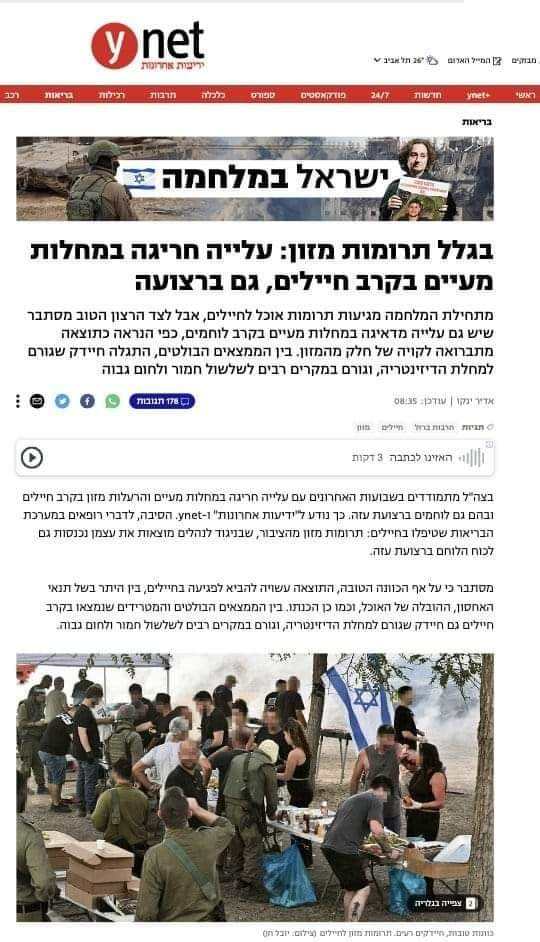 أشارت إلى أن جيش الاحتلال يرجح أن أحد أسباب هذه البكتيريا التي تسبب ما يسمى بــ”الزحار”، أي التهاب واضطراب الأمعاء، والإسهال الشديد وارتفاع درجات الحرارة هو “سوء تخزين” بعض المواد الغذائية التي تصل للجنود.