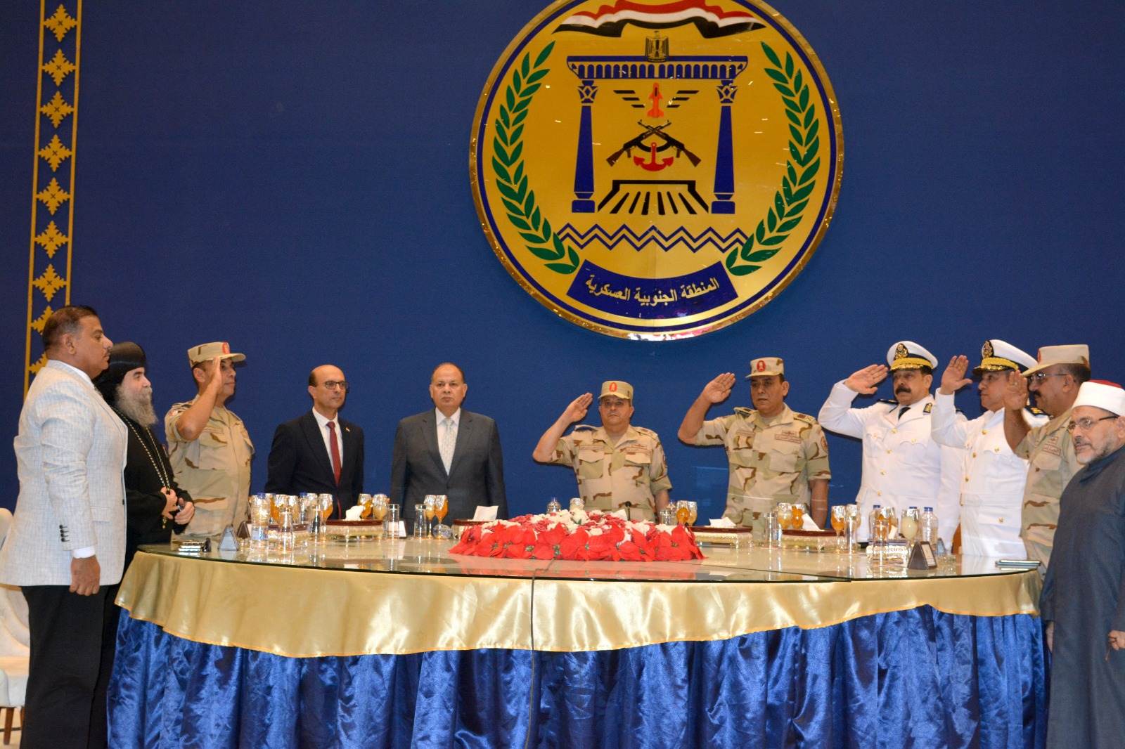 وبدأ الحفل بالوقوف دقيقة؛ حداداً على أرواح شهداء الوطن الأبرياء، ونقل اللواء أركان حرب محب حبشي خليل قائد المنطقة الجنوبية العسكرية؛ تحية وتقدير الفريق أول محمد زكي القائد العام للقوات المسلحة ووزير الدفاع والانتاج الحربي، مؤكدًا أن التاريخ الوطني؛ سيتذكر بكل الفخر ما قدمه هؤلاء الشهداء، والمصابون؛ من تضحيات، وبطولات سطرت في سجلات الشرف؛ بأحرف من نور