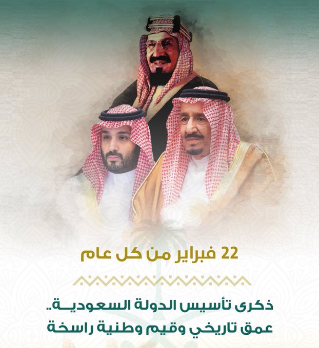 وكان خادم الحرمين الشريقين الملك سلمان بن عبدالعزيز آل سعود، أصدر أمرا ملكيا بأن يكون يوم (22 فبراير) من كل عام يوماً لذكرى تأسيس الدولة السعودية، باسم (يوم التأسيس)، ويصبح إجازة رسمية.