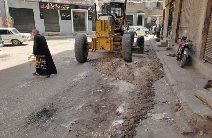 تمهيد شوارع منطقة الشادر بحى غرب أسيوط لبدء اعمال الرصف