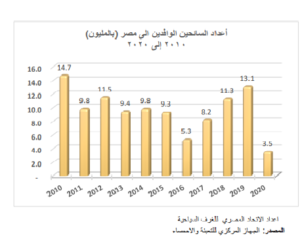وتشير الاحصائيات الرسمية أن عدد السياح الذي يزورون مصر سنويا يتغير من عام لعام . فقد بلغ عدد الزائرين عام 2010 حوالي 14.7 مليون ، وانخفض الى 3.5 مليون عام 2020. ويعتبر هذا الرقم قليل جدا بالنسبة لدولة كبيرة مثل مصر تمتلك ثلث آثار العالم وتنفرد بأجمل الشواطئ فى العالم مثل شواطئ الغردقة وشرم الشيخ وشوطئ الإسكندرية والساحل الشمالي الغربي فى مدينة مرسى مطروح. وهي امكانيات كبيرة تتفوق على ما تمتلكه دولة مثل اسبانيا التى يزورها حوالى ٣٠ مليون سائح سنويا.