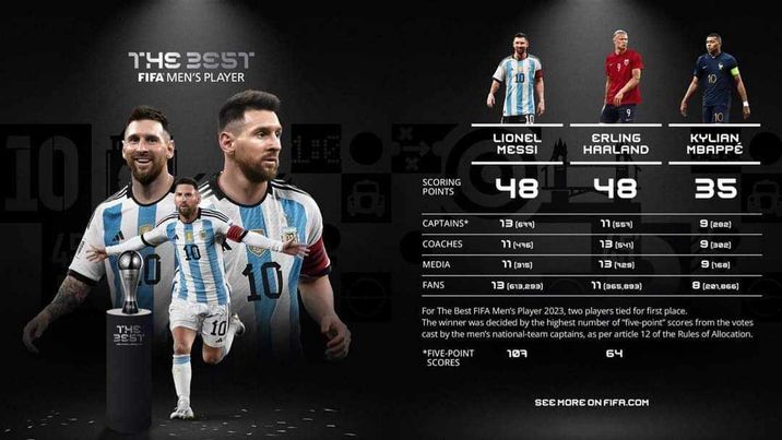 وفاز ميسي بالجائزة بعد أن تساوي في التصويت مع إيرلنج هالاند النرويجي ولكن ما رجح كافة ليونيل ميسي هو التصويت له كأفضل قائد منتخب لبلاده.