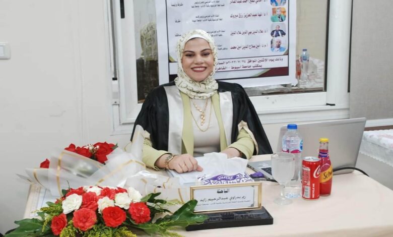 معيدة بقسم اللغة الفرنسية بكلية الآداب بجامعة أسيوط بمناسبة حصولها على درجة الماجستير
