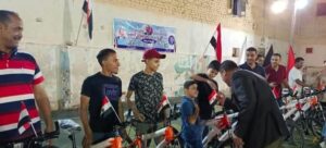 وحيث تم توزيع ١٧ دراجة جبلى عاى على اسر الشهداء والمصابين والمستفيدين من الدفعة الاولى للمرحلة الرابعة وتهدف المبادرة الى نشر ثقافة ممارسة الرياضة من خلال ركوب الدارجات ورفع مستوى اللياقة الصحية والبدنية