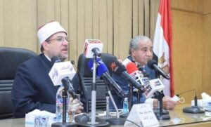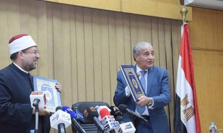 وقع وزير التموين والتجارة الداخلية الدكتور علي المصيلحي ووزير الأوقاف الدكتور محمد مختار جمعة 3 بروتوكولات تعاون اولها يتعلق بقيام الشركة القابضة للصناعات الغذائية التابع لوزارة التموين بتوفير اللحوم الطازجة من الأبقار للبلاد طوال العام التي تطلبها وزارة الاوقاف والاستفادة من الكميات المتوفرة من الأبقار الواردة من السودان والتى قامت الشركة القابضة بالتعاقد على استيرادها من السودان.