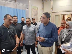 كان في استقبالهم دكتور ابراهيم السيد ناصر مدير المستشفي والدكتور وائل عمران مدير الإدارة الصحية والدكتور أحمد صدقي نائب المدير.