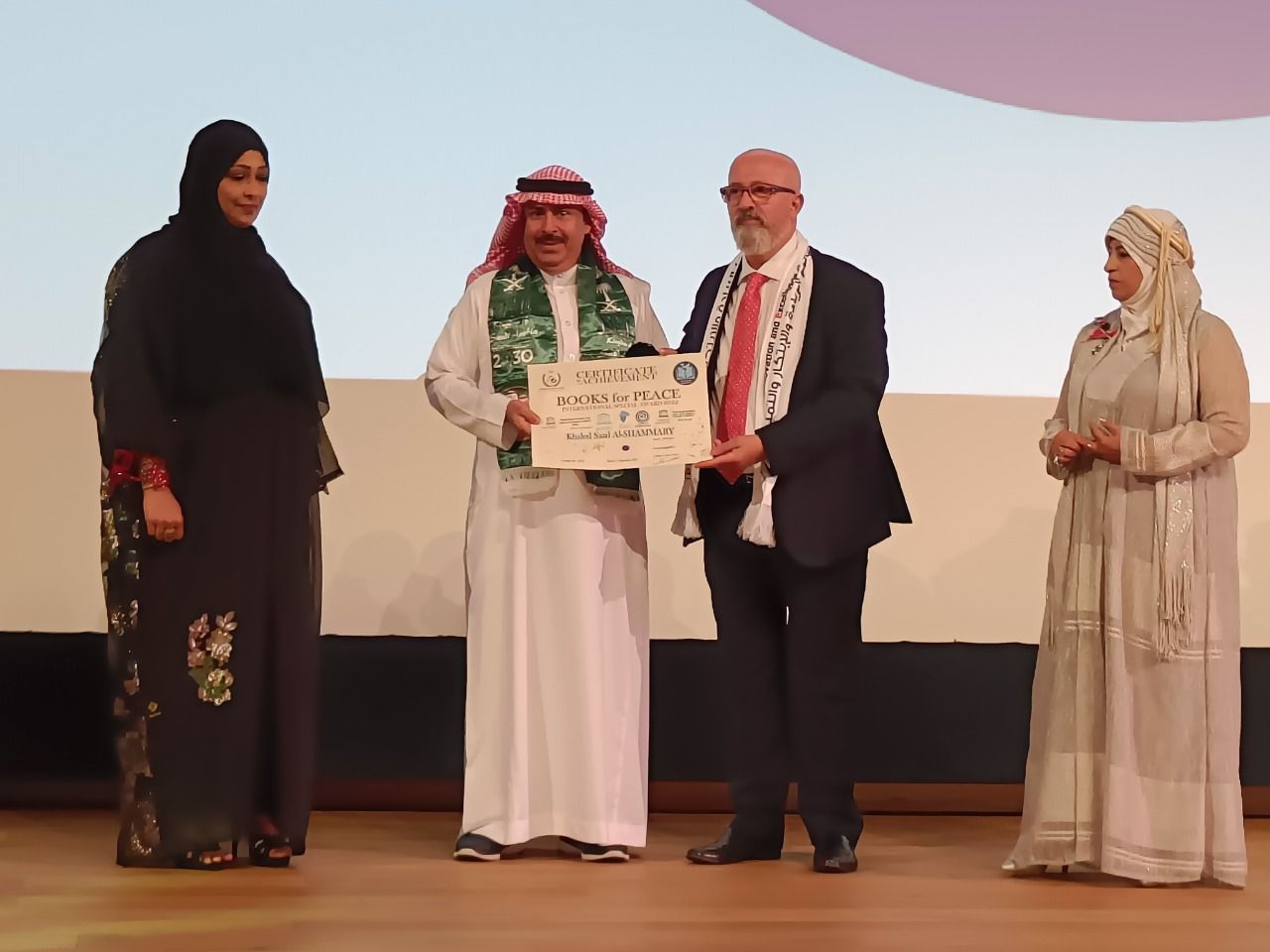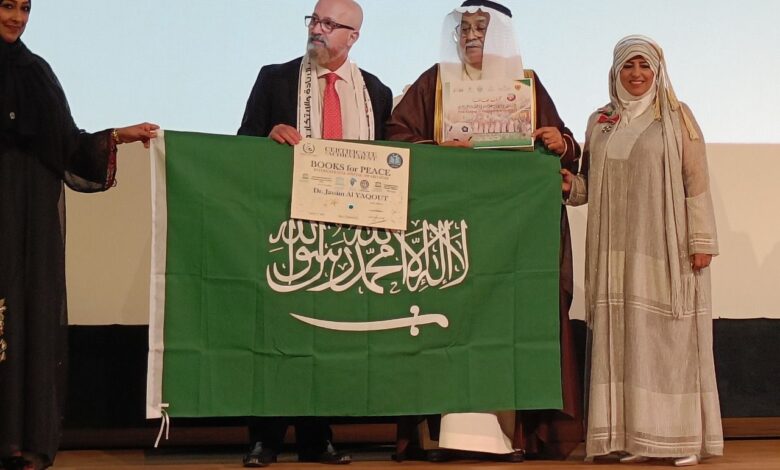 وأعلن “الياقوت” إهداء جائزة كتب السلام الدولية لعام 2022 إلى الوطن الغالي وإلى مقام خادم الحرمين الشريفين الملك سلمان بن عبد العزيز وولي عهده الأمين صاحب السمو الملكي الأمير محمد بن سلمان حفظهما الله