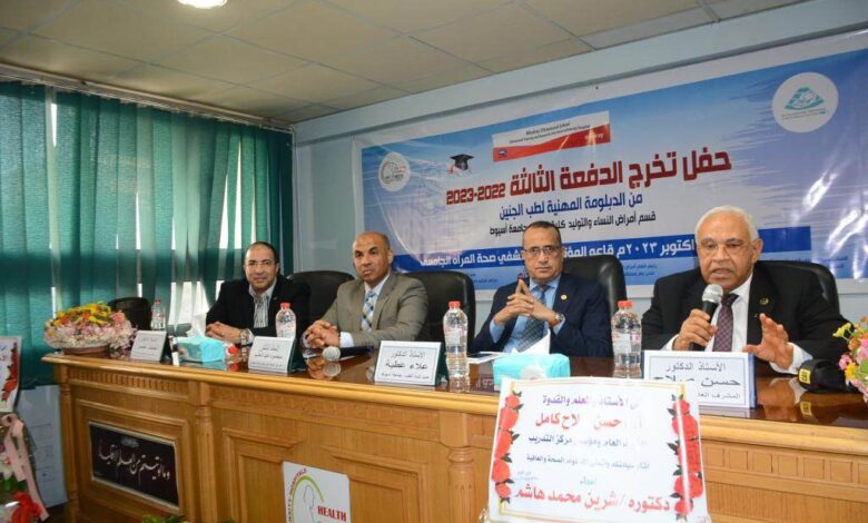 وبحضور الدكتور محمود عبد العليم نائب رئيس جامعة أسيوط لشئون خدمة المجتمع وتنمية البيئة والدكتور علاء عطيه عميد كلية الطب ورئيس مجلس إدارة مستشفيات أسيوط الجامعية، والدكتور أحمد محمد نصر مدير مستشفى صحة المرأة بجامعة أسيوط والدكتور حسن صلاح نائب رئيس جامعة أسيوط الأسبق والمشرف العام على الوحدة ومنسق الدبلوم ولفيف من الأساتذة وأعضاء هيئة التدريس بقسم أمراض النساء والتوليد، والطلاب المجتازين للدبلومة