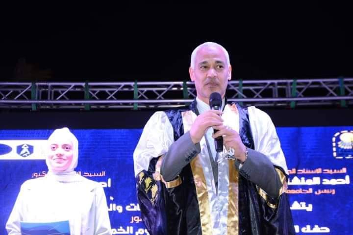 و في مستهل الإحتفال أشاد الدكتور أحمد عبد المولي بدور أولياء الأمور لما بذلوه من جهد و عطاء لأبنائهم الطلاب , مؤكداً علي حرص إدارة الجامعة علي التواصل الدائم مع كافة الطلاب في جميع القطاعات التعليمية وتوفير كافة سبل الدعم لأبناء الجامعة من الخريجين في مختلف التخصصات , متمنياً لكافة الطلاب النجاح و التفوق في الحياة القادمة و مواصلة التعلم والبحث وتنمية المهارات في مختلف التخصصات لرفع كفائتهم للتنافس ولمواجهة سوق العمل .