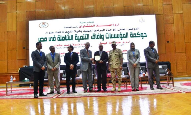 انطلقت فعاليات المؤتمر العلمي لوحدة البرامج المهنية بكلية التجارة بعنوان “حوكمة المؤسسات وآفاق التنمية الشاملة في مصر”، تحت رعاية الدكتورة نيفين القباج وزيرة التضامن الاجتماعي، والدكتور أحمد المنشاوى رئيس جامعة أسيوط، والدكتور علاء عبد الحفيظ عميد الكلية ورئيس المؤتمر ، والدكتور نسمة أحمد حشمت وكيلة الكلية لشئون الدراسات العليا ونائب رئيس المؤتمر.