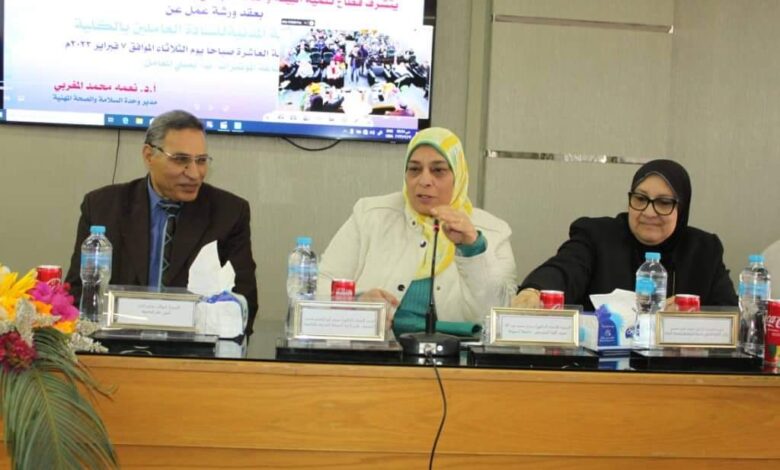 والدكتورة نعمة المغربي مدير وحدة السلامة والصحة المهنية بالكلية وبمشاركة عدد كبير من العاملين بالكلية