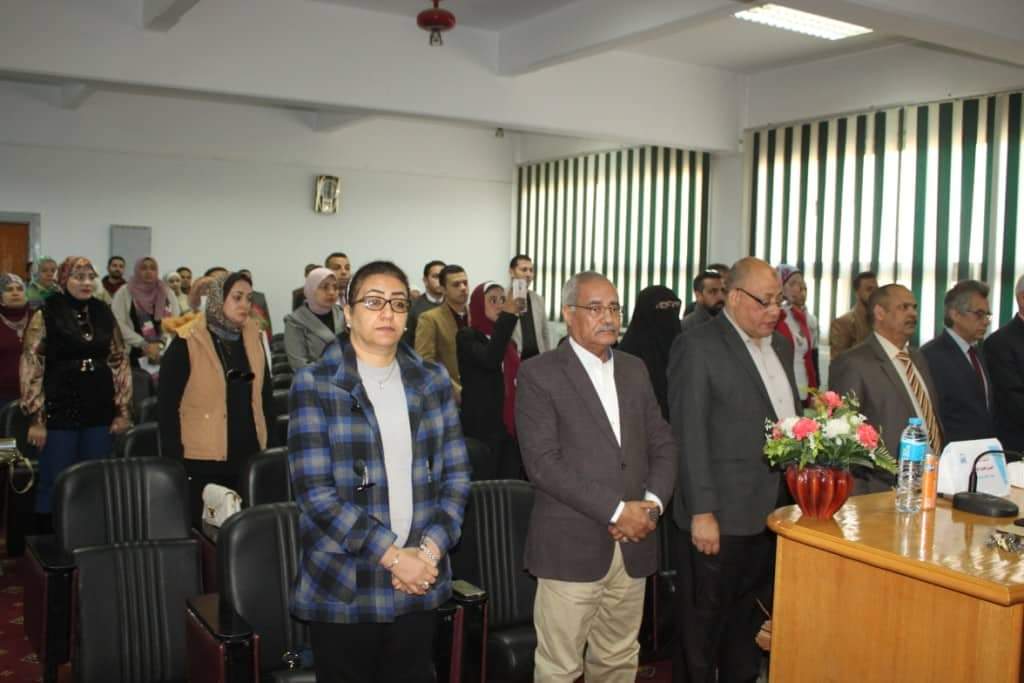 وكيل كلية التربية لشئون خدمة المجتمع و تنمية البيئة ولفيف من اعضاء هيئة التدريس بالكلية وبمشاركة عدد من معاونى اعضاء هيئة والباحثين من جامعة اسيوط والجامعات المصرية حضوريا لمن داخل الجامعة واون لاين لمن خارج الجامعة من خلال برنامج zoom .