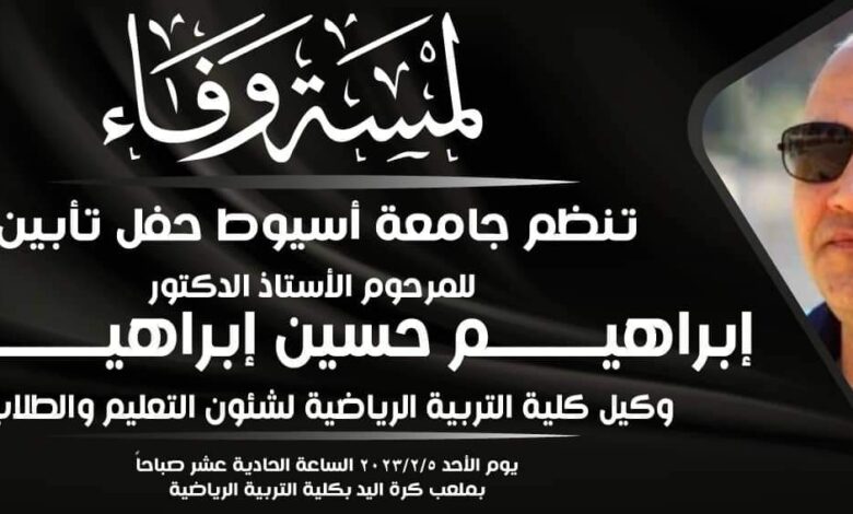 جامعة أسيوط تقييم غداً الأحد جلسة تأبين للدكتور ابراهيم حسين فى ملعب كرة اليد