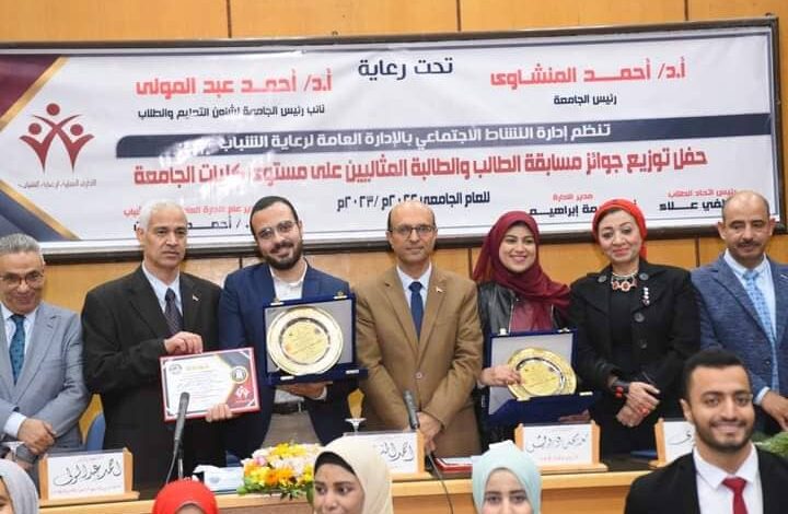 فوز الطالب أحمد إبراهيم والطالبة سارة حمدي بلقب الطالب المثالي على مستوى الجامعة