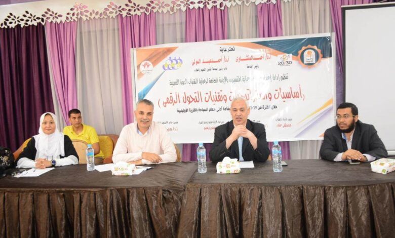 نظمت إدارة إعداد القادة ورعاية المتميزين بالإدارة العامة لرعاية الشباب بجامعة أسيوط  تحت رعاية الدكتور أحمد المنشاوي رئيس جامعة أسيوط دورة تدريبية للعاملين حول أساسيات، واستراتيجيات، وتقنيات التحول الرقمي والتي تستمر خلال الفترة من 19 وحتى 21 من سبتمبر 2023 بقاعة حمام السباحة بالقرية الأوليمبية بجامعةأسيوط