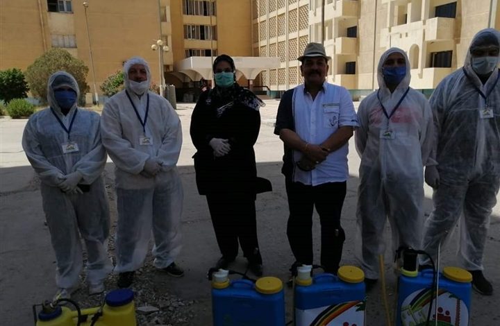 من إجراء عمليات التطهير والتعقيم الدائم والمستمر لكافة المنشآت مع استخدام المشاركين في عملية الامتحان