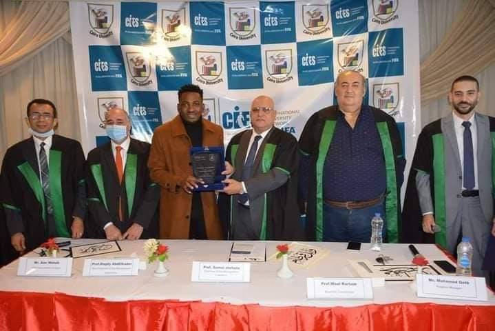 جامعة القاهرة تكرم لاعب الأهلي أجايي خلال احتفالية تخريج دبلومة فيفا