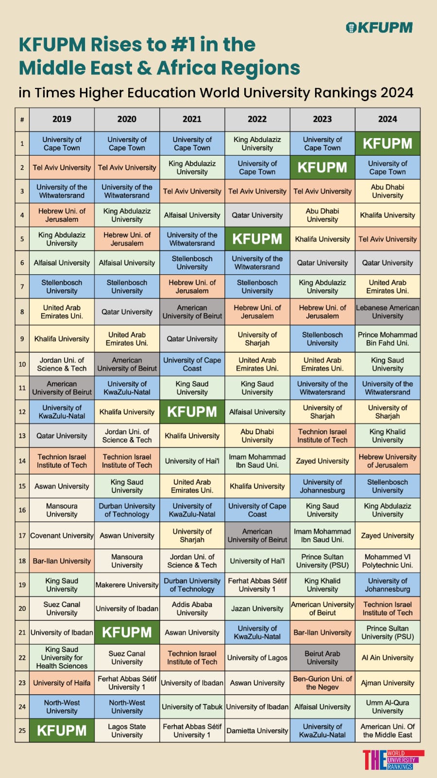جامعة الملك فهد للبترول والمعادن تتصدر تصنيفات الجامعات في الشرق الأوسط وأفريقيا لعام 2024