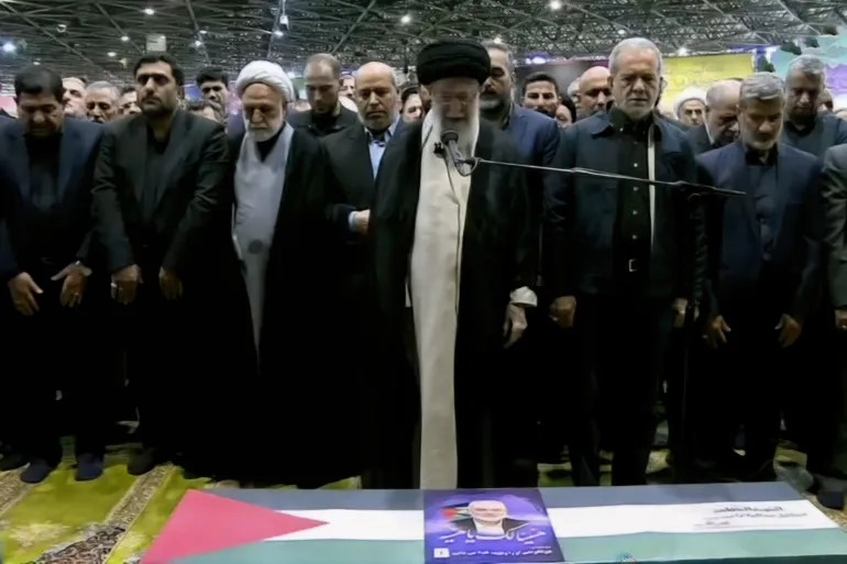 وأقام المرشد الأعلى الإيراني علي الخامنئي، صلاة الجنازة صباح اليوم على جثمان القائد الشهيد إسماعيل هنية المقام في جامعة طهران.