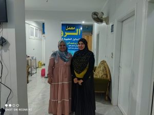 الدكتوره عائشه على اليمين وعلى اليسار الاستاذة مايسه محروس المدير الإداري للمعمل