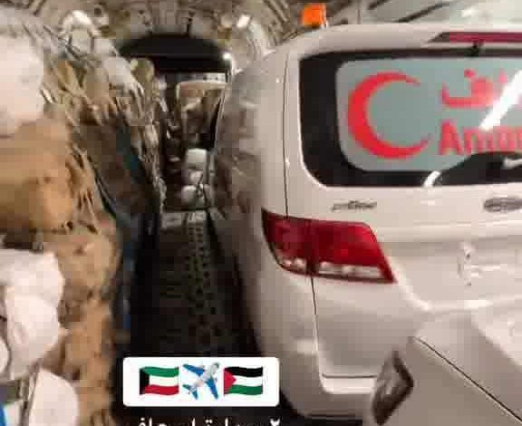 *مساعدات شعبية من الكويت لغزة طائرة جديدة محملة بـ300 خيمة وبملابس شتوية بالاضافة الى اطنان من المواد الغذائية والطبية وسيارتي اسعاف.