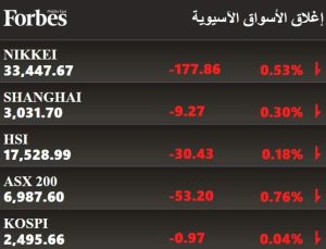 *الهبوط يغلب على أسواق آسيا والمحيط الهادئ ،في ظل ترقب المستثمرين بيانات التضخم في الولايات المتحدة وتداعياتها على الأسواق .