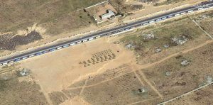 * صورة التقطتها الأقمار الصناعية تظهر شاحنات نقل المساعدات الإنسانية المنتظرة عند معبر رفح الحدودي بين مصر وقطاع غزة .