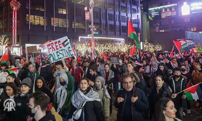 -تظاهرة حاشدة في مدينة نيويورك تنديدا بالدعم الأميركي للحرب على غزة.