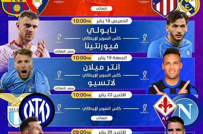 تشهد الأراضي السعودية مباريات كثيرة ممتعة في كأس السوبر  إلايطالي والسوبر الإسباني ومباريات كأس موسم الرياض خلال الشهر الحالي يناير 2024 واوائل شهر فبراير