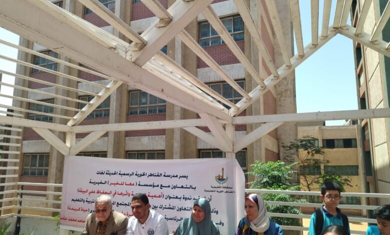 استضافت مدرسة القناطر الرسمية الحديثة للغات جمعية “معا للخير” بالقناطر الخيرية ممثلة فى الاستاذ حامد محمد ابراهيم رئيس مجلس الإدارة والاستاذه مروة مرسي عضو مجلس الادارة ومسؤوله الاعلام والعلاقات العامه بالجمعية ،بدعوة كريمة من مديرها الاستاذ محمد سعيد ، للمشاركة في ندوة نظمتها المدرسة عن اهمية الزراعة والمحافظه على البيئة في ظل التغيرات المناخية وذلك ضمن فاعليات حملة حياة كريمه لزراعة مليون ونص شجرة مثمرة فى مصر.