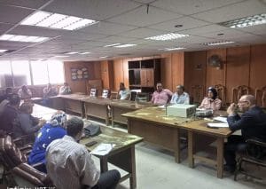 اجتمع الدكتور وليد عبد المقصود وكيل وزارة الصحة ببورسعيد مع ادارة مراقبة الاغذية بالمديرية التابعة للادارة الوقائية و السادة المراقبيين الصحيين بمكاتب اغذية بورسعيد و بورفؤاد وادارة المعمل المشترك و ادارة الخدمات المعملية و ذلك لبحث المعوقات في اطار العمل و تم التأكيد علي ضروره وضع خطة عمل لتغطية جميع المنشآت التي تقدم خدمة غذائية للمواطنين و وضع خطط استباقيه لمكافحة الامراض المنقوله عن طريق الغذاء و الشراب .