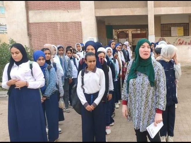 حيث حضرت تابور الصباح واستمعت الي الإذاعة المدرسية والنشيد الوطني وتحية العلم وبعد ذلك توجهت لمتابعة سير العملية التعليمية بمدرسة باسوس الاعدادية بنات وتم المرور على  الفصول الدراسية وقاعات رياض الاطفال بمدرستي ابو الغيط الابتدائية المشتركة الدين الابتدائية.