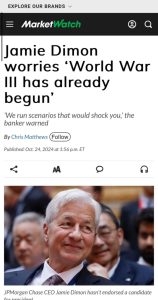 صرّح جيمي ديمون، الرئيس التنفيذي لبنك “جيه بي مورجان”، خلال جلسة في الاجتماع السنوي لمعهد التمويل الدولي بواشنطن العاصمة، بأن العالم يعيش بداية لحرب عالمية ثالثة على ضوء الأحداث الجيوسياسية الراهنة. يرى ديمون أن تأثيرات الاقتصاد أصبحت محدودة مقارنة بالتحولات الجيوسياسية، مشيراً إلى المخاطر الكبيرة التي يتعرض لها النظام العالمي الذي أسسته الولايات المتحدة وحلفاؤها بعد الحرب العالمية الثانية.