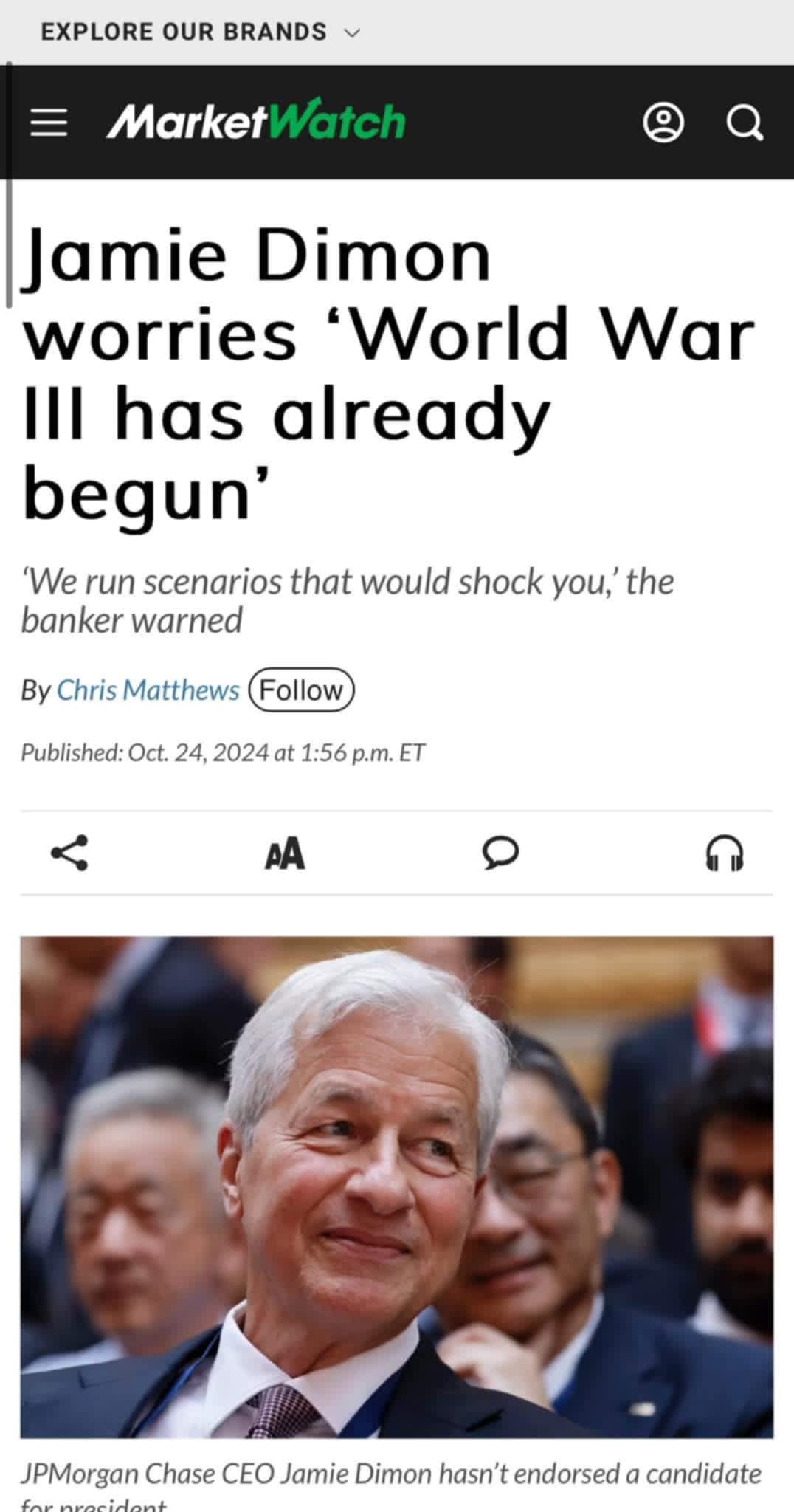 جيمي ديمون: الحرب العالمية الثالثة بدأت بالفعل وسط مخاطر جيوسياسية متصاعدة