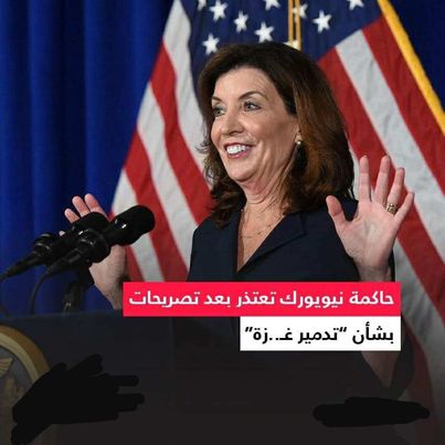 اعتذرت حاكمة نيويورك، كاثي هوشول عن التصريحات التي أدلت بها في مدينة نيويورك، وأشارت فيها إلى أن”إسـ..رائـ..يل لديها مبرر لتدمير غـ..زة”.