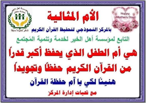 فى لافته جميلة بقرية منشية سلطان بمركز منوف بالمنوفية وضع مركز لتحفيظ القرآن الكريم شروطا لاختيار الأم المثالية لعام ٢٠٢١م وهى أن يكون ابنها حافظ أكبر قدر من كتاب الله.