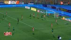 بعدها تسديدة من الشحات ترتد من المهدي لوسام والذي تمر منه الي رضا سليم يسددها بغرابة شديدة خارج المرمى