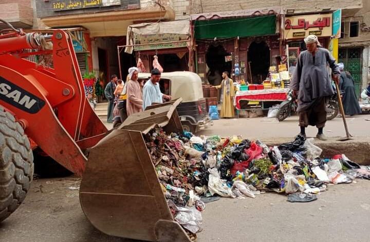 أعمال حملات النظافة بقرى المركز ورفع الاتربة وتجمعات القمامة من الشوارع والميادين تزامناً مع إحتفالات شهر رمضان المبارك