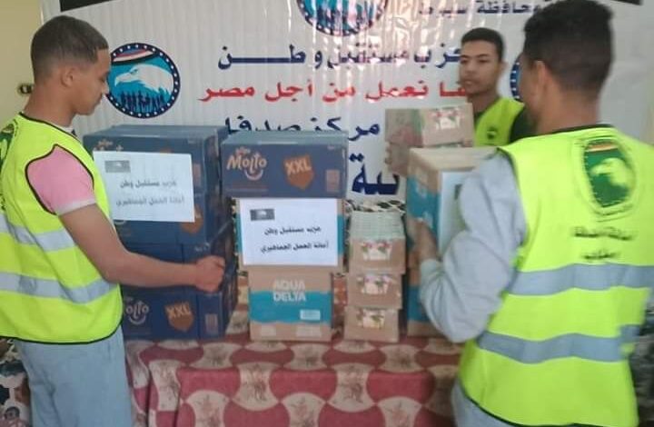 قامت أمانة العمل الجماهيرى بحزب مستقبل وطن بمركز صدفا بمحافظة أسيوط بإطلاق حملة افطار صائم لتوزيع الوجبات الجاهزة من عصائر واكلات سريعه ومياة معدنية لإفطار الصائمين المسافرين على الطرق السريعة