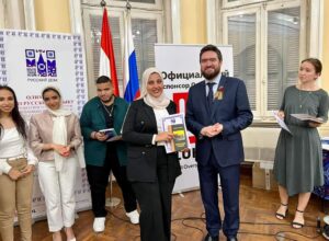 أخُتتمت فعاليات أوليمبياد اللغة الروسية لدورة عام 2023 بالبيت الروسى بالقاهرة حيث تم توزيع الجوائز على الفائزين فى أطار أحتفالية كبرى شارك فيها مائة متسابق مثلوا جامعات القاهرة وعين شمس والأقصر والسويس وجنوب الوادى ومصر للعلوم والتكنولوجيا بالأضافة الى طلاب دورات اللغة الروسية بالبيت الروسى بالقاهرة؛