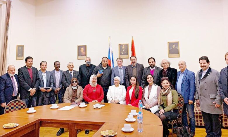 استقبل البيت الروسى بالقاهرة برئاسة “مراد جاتين” عدداً من القيادات الثقافية وممثلي مؤسسات المجتمع المدني، لبحث التعاون المشترك فى اطار عام مصر- روسيا. حضر اللقاء “شريف جاد” مدير النشاط الثقافى بالبيت الروسى ود.”فتحى طوغان” أمين عام الجمعية المصرية لخريجى الجامعات الروسية والسوفيتية والدكتورة “صفية القبانى” نقيب التشكيليين و”رنا أبو الأنوار” من المركز القومى للترجمة، والمهندس “صبرى العشماوى” رئيس جمعية بناة السد العالى، والاخوة “شادى ونبيل حسين الشافعى” من المؤسسة المصرية الروسية للثقافة والعلوم، والفنان “محمود عبد السميع” رئيس جمعية الفيلم، و”خالد الشناوى” ممثل البيت الفنى للفنون الشعبية، و”ميار وائل” من وكالة الفضاء المصرية، ود.”أحمد طاهر” مدير مركز الحوار، والباحث “عبد الله الصاوى” ود.”دينا طريف” رئيس جمعية أرسينوى لتنمية المجتمع ود.”أسامة السروى” الاستاذ بكلية التربية الفنية والنحات “عادل بدر” مدير قصر الأمير طاز ود.”دينا محسن” مدير صالون طه حسين الثقافى، والاعلاميين “عبد الله الحاج” و”أحمد الأشقر” و”نورا خلف”.