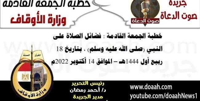 خطبة الجمعة الموافق 14أكتوبر2022…..إعـلام الأنـــــام بفضـل الصلاة والسلام عــلى خــير الأنـام