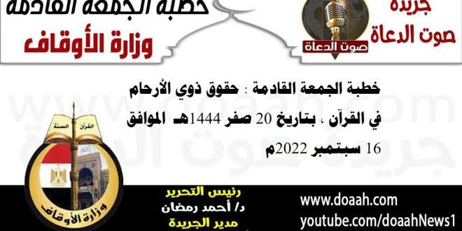 خطبة الجمعة الموافق 16سبتمبر 2022……حقوق ذوي الأرحام في القرآن والسنة