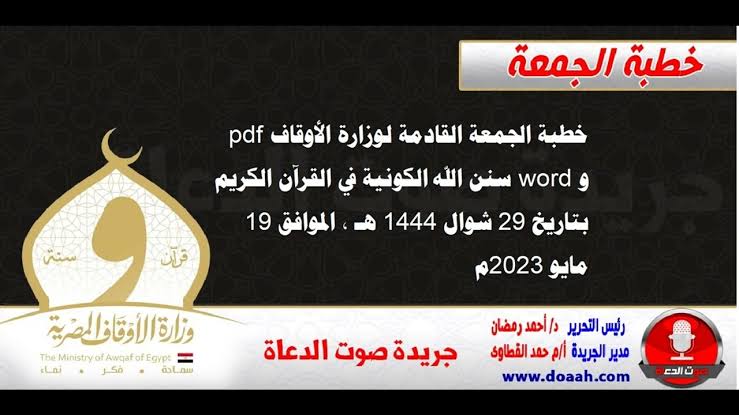 خطبة الجمعة الموافق 19مايو2023….السنن الكونية في القرآن الكريم