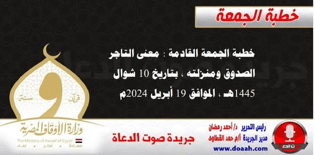 خطبة الجمعة الموافق 19 إبريل 2024…التاجر الصدوق ومنزلته