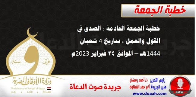 خطبة الجمعة الموافق 24فبراير 2023……الصدق في الأقوال والأعمال