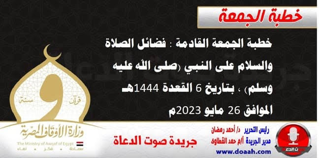خطبة الجمعة الموافق 26 من مايو 2023…… إعلام الأنام بفضل الصلاة والسلام على خير الأنام