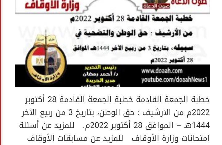 خطبة الجمعة الموافق 28أكتوبر 2022….حق الوطن