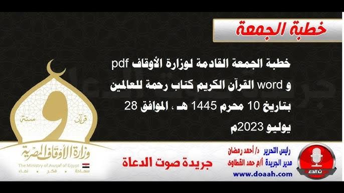 خطبة الجمعة الموافق 28يوليو 2023… القرآن الكريم رحمة للعالمين